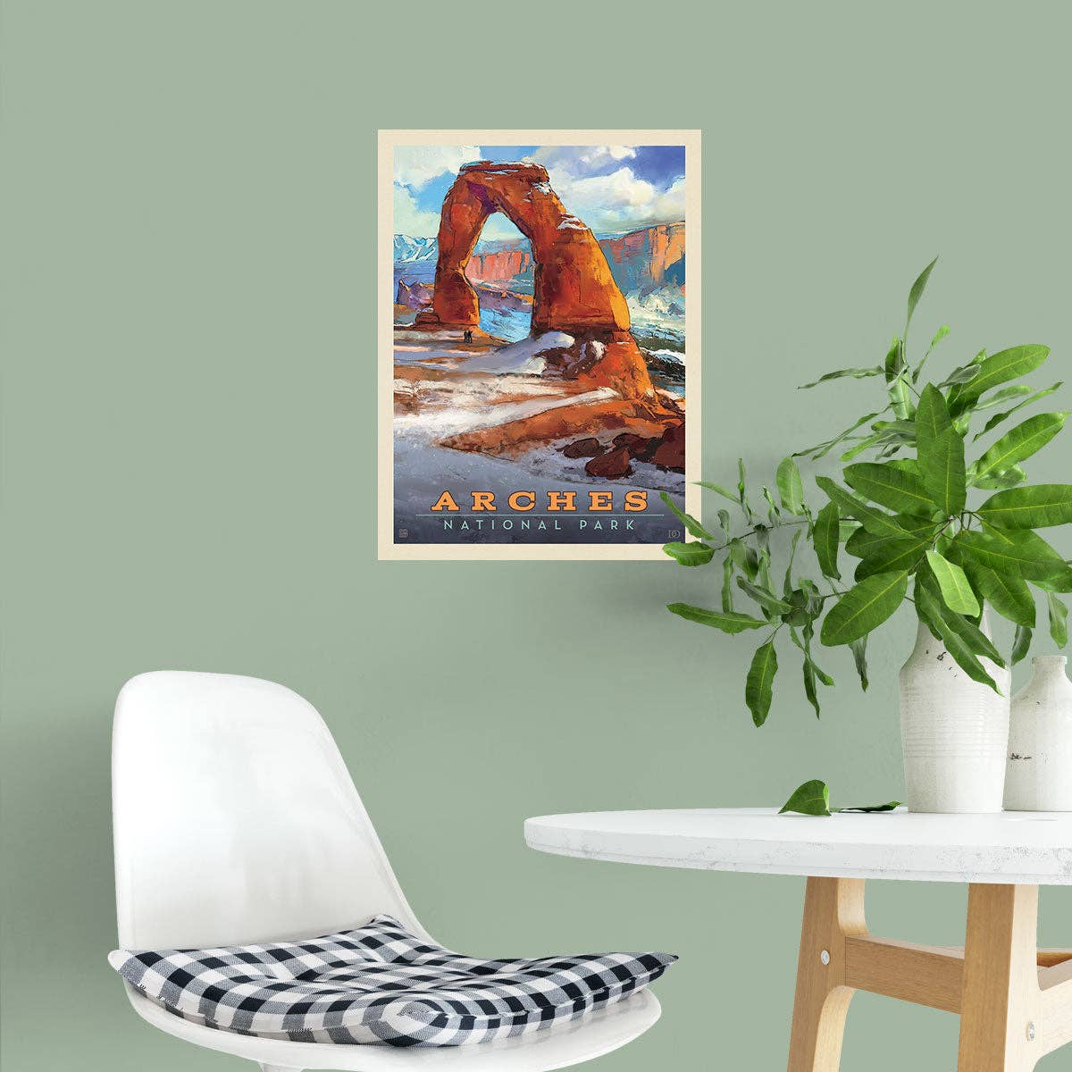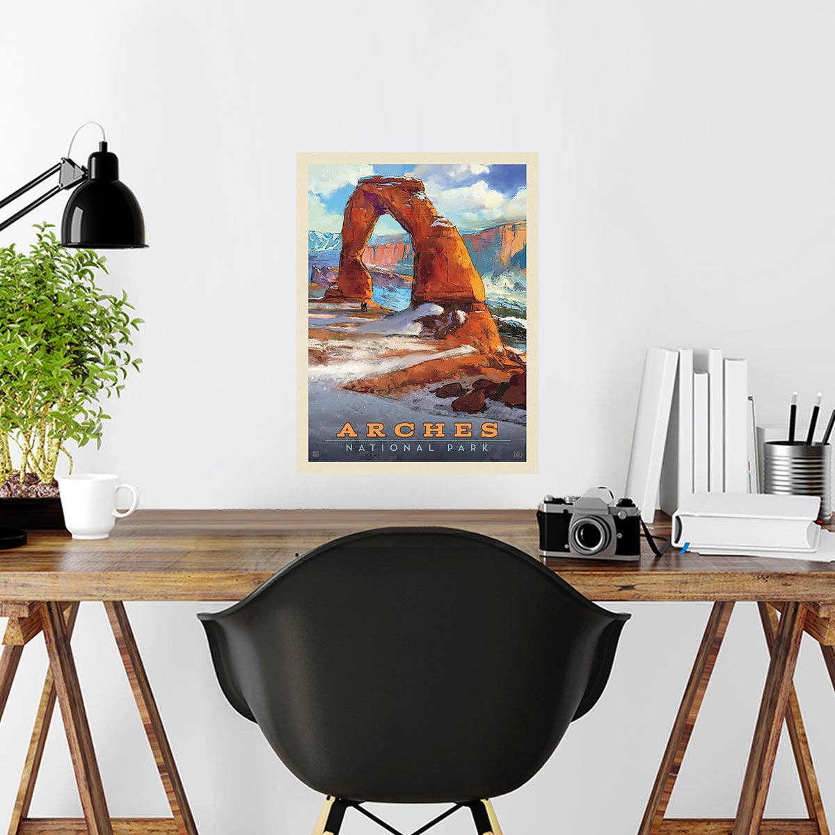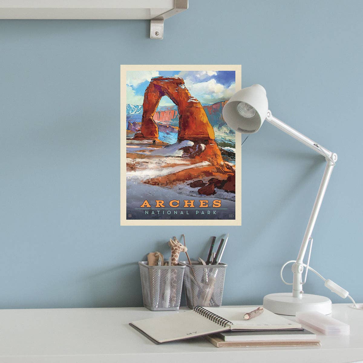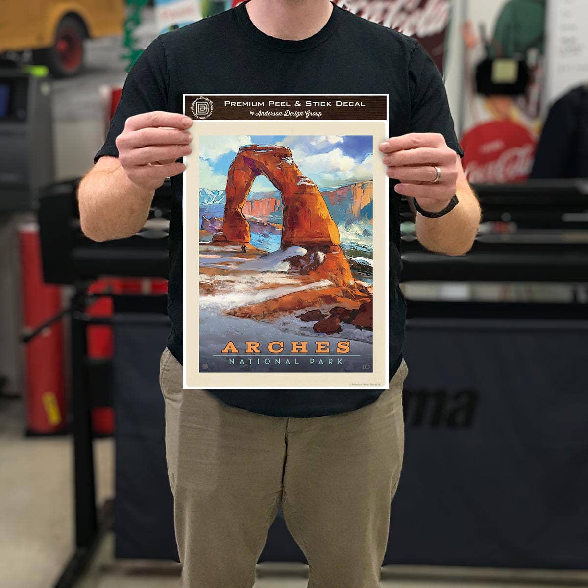 This Arches National Park Utah Delicate Arch Decal is perfect for decorating any room with a retro look. Printed on premium vinyl with vintage style artwork by David Owens. Easy to apply to smooth surfaces. Made in the USA and officially licensed. Copyright Anderson Design Group, Inc.