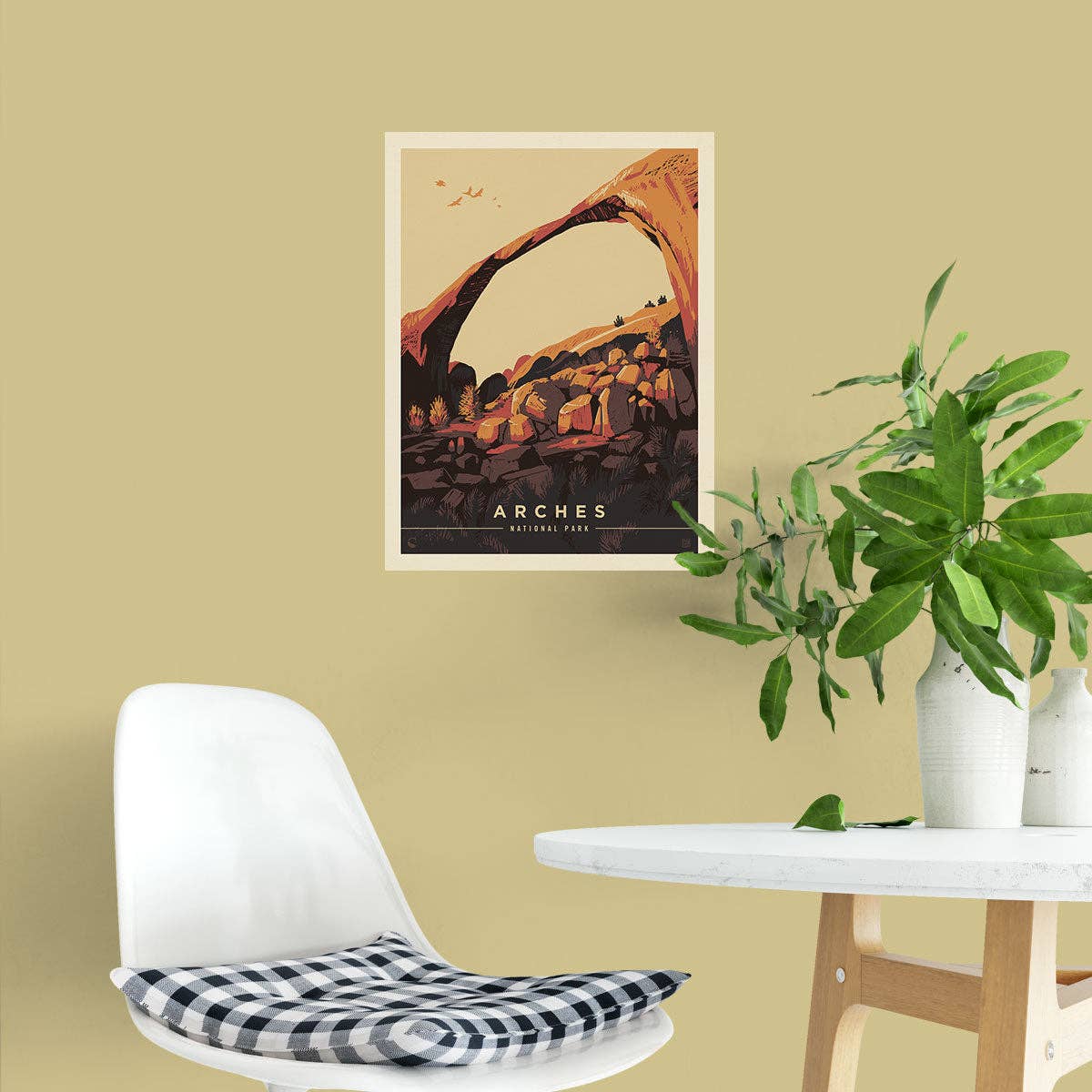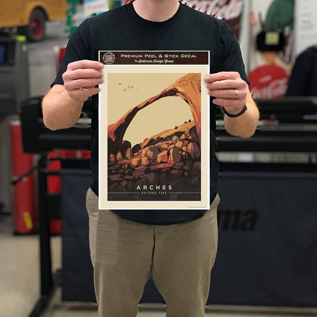 This Arches National Park Utah Devils Garden Decal is perfect for decorating any room with a retro look. Printed on premium vinyl with vintage style artwork by Kenneth Crane. Easy to apply to smooth surfaces. Made in the USA and officially licensed. Copyright Anderson Design Group, Inc.