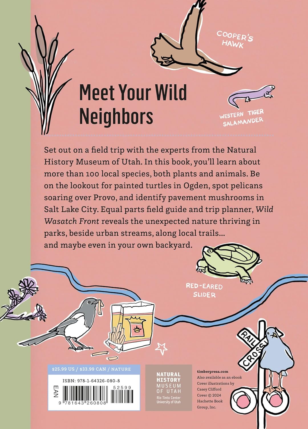 Set out on a field trip with the experts from the Natural History Museum of Utah. In this book, you’ll learn about over 100 local species, both plants and animals. Be on the lookout for painted turtles in Ogden, spot pelicans soaring over Provo, and identify pavement mushrooms in Salt Lake City. Equal parts field guide and trip planner, Wild Wasatch Front reveals the unexpected nature thriving in parks, beside urban streams, along local trails… and maybe even in your own backyard.
