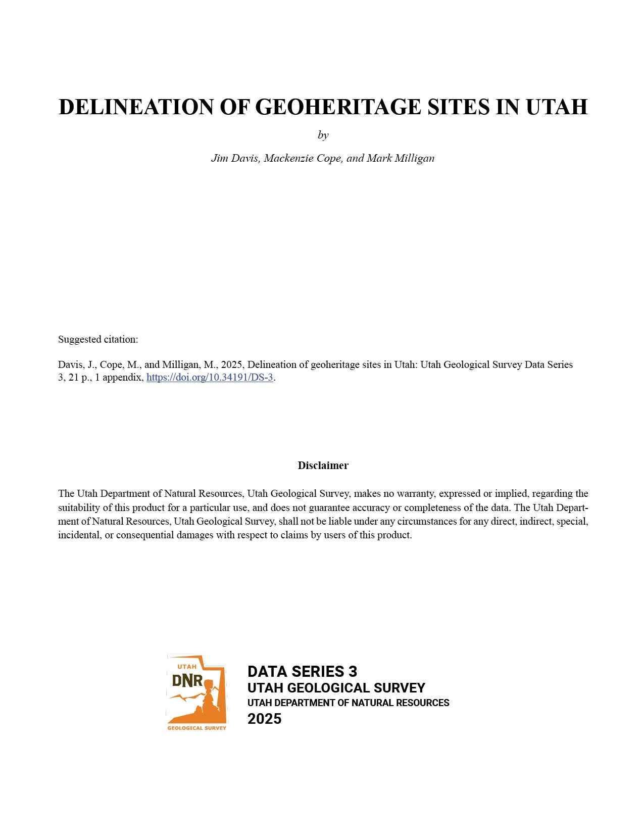 Delineation of Geoheritage Sites in Utah presents Utah’s geodiversity and establishes a standardized inventory and ranking system for the state’s most valuable geological assets for use as a tool in conservation, education, and public outreach, and for future land management and policy implementation. From existing inventories and author additions, a total of 739 sites were identified as potential geoheritage sites, which were shortlisted based on five criteria—scientific significance, educational value, cultural importance, economics, and aesthetics—to 129 sites. Social significance, threats of alteration or destruction, and proximity to other sights were also scored and measured. The ten highest scoring sites are highlighted and discussed.