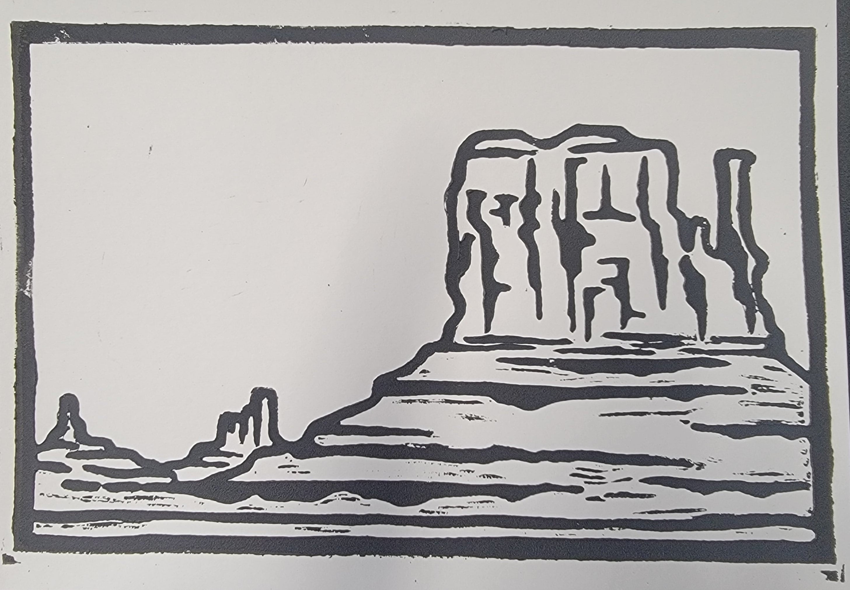 Embrace the rugged charm and timeless allure of the West Mitten Butte with this unique woodblock note card. The bold lines and stark contrasts of the print capture the essence of this iconic landscape, inviting you to share a piece of its magic with your loved ones. Each card is a testament to the enduring beauty of Monument Valley, a reminder of the power of nature and the artistry of human hands, making it a cherished keepsake for any occasion.