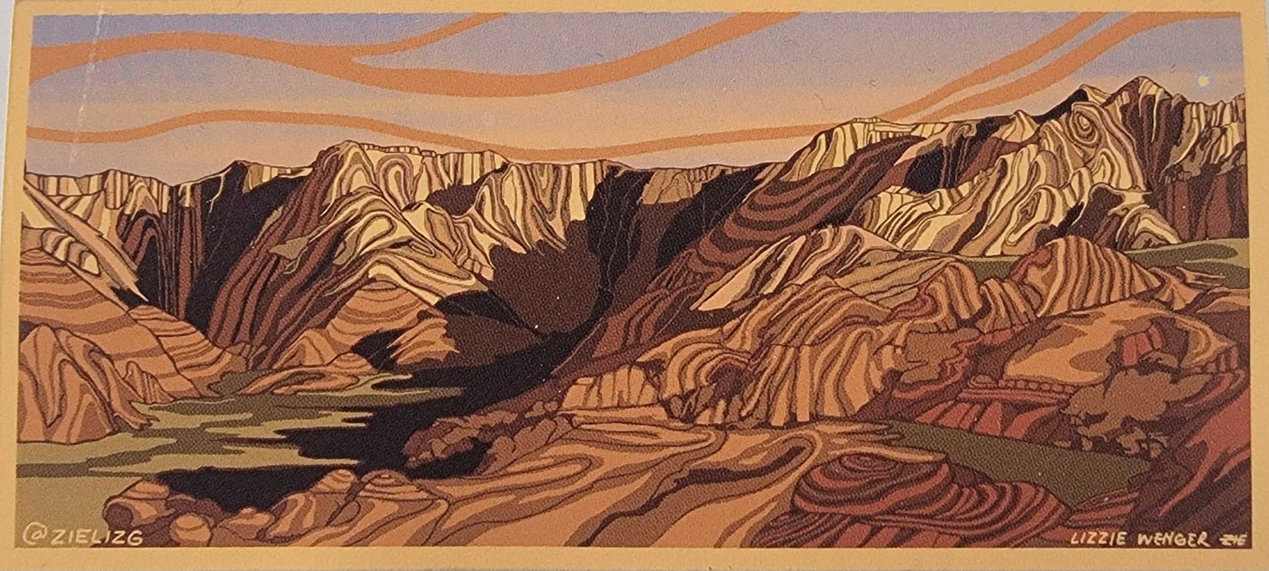 Artist and Salt Lake City native, Lizzie Wenger translates her profound connection to Utah's iconic landscapes into these dynamic stickers. Choose from Snow Canyon, The Three Gossips, The Union of the La Sals, or Castleton Towers.