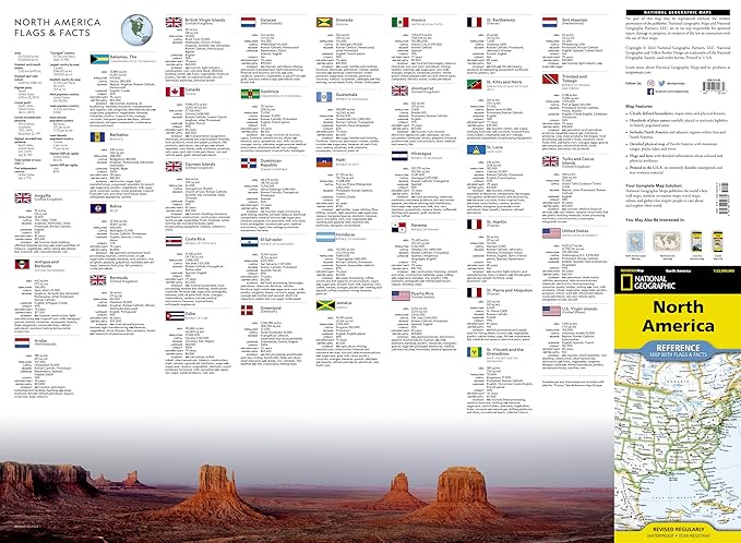 The National Geographic Reference Map "North America" is a thrilling guide to the continent's diverse landscapes and vibrant cultures. This map showcases the vast expanse of the Rocky Mountains, stretching from Canada to the United States, with their snow-capped peaks and breathtaking vistas. It also highlights the Great Plains, a vast region of rolling grasslands that extends from Canada to Texas. The map beautifully illustrates the mighty Mississippi River, winding its way through the heart of the continent, and the stunning Great Lakes, the largest group of freshwater lakes in the world. From the icy expanses of the Arctic to the tropical beaches of the Caribbean, this map invites you to explore the wonders of North America.